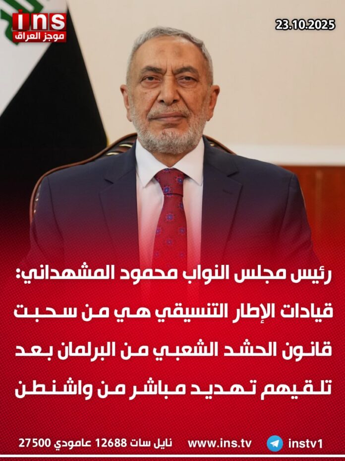 الرئيسيةالأخباررئيس مجلس النواب محمود المشهداني: قيادات الإطار التنسيقي هي من سحبت قانون... الأخبار رئيس مجلس النواب محمود المشهداني: قيادات الإطار التنسيقي هي من سحبت قانون الحشد الشعبي من البرلمان بعد تلقيهم تهديد مباشر من واشنطن 0 20 أكتوبر 23, 2025 كتب بواسطة موجز العراق ins شارك FacebookTwitterPinterestWhatsAppTelegramViberCopy URL شارك FacebookTwitterPinterestWhatsAppTelegramViberCopy URL مقالات ذات صلة الأخبار غارة جوية إسرائيلية تستهدف سيارة في بلدة حاروف جنوبي لبنان أكتوبر 25, 2025 الأخبار وزارة الخزانة الأمريكية تعلن عن عقوبات اقتصادية على الرئيس الكولومبي غوستافو بيترو وعائلته وشركائه لدورهم في تهريب المخدرات أكتوبر 24, 2025 الأخبار مجموعة العمل المالي ” اف اي تي اف” في أحدث بيان لها: لا تزال إيران مدرجة على القائمة السوداء للدول عالية المخاطر في مجال... أكتوبر 24, 2025