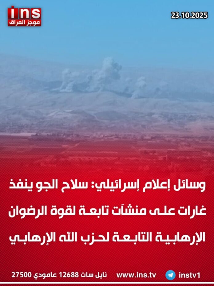 الرئيسيةالأخباروسائل إعلام إسرائيلي: سلاح الجو ينفذ غارات على منشآت تابعة لقوة الرضوان... الأخبار وسائل إعلام إسرائيلي: سلاح الجو ينفذ غارات على منشآت تابعة لقوة الرضوان الإرهابية التابعة لحزب الله الإرهابي 0 25 أكتوبر 23, 2025 كتب بواسطة موجز العراق ins شارك FacebookTwitterPinterestWhatsAppTelegramViberCopy URL شارك FacebookTwitterPinterestWhatsAppTelegramViberCopy URL مقالات ذات صلة الأخبار غارة جوية إسرائيلية تستهدف سيارة في بلدة حاروف جنوبي لبنان أكتوبر 25, 2025 الأخبار وزارة الخزانة الأمريكية تعلن عن عقوبات اقتصادية على الرئيس الكولومبي غوستافو بيترو وعائلته وشركائه لدورهم في تهريب المخدرات أكتوبر 24, 2025 الأخبار مجموعة العمل المالي ” اف اي تي اف” في أحدث بيان لها: لا تزال إيران مدرجة على القائمة السوداء للدول عالية المخاطر في مجال... أكتوبر 24, 2025