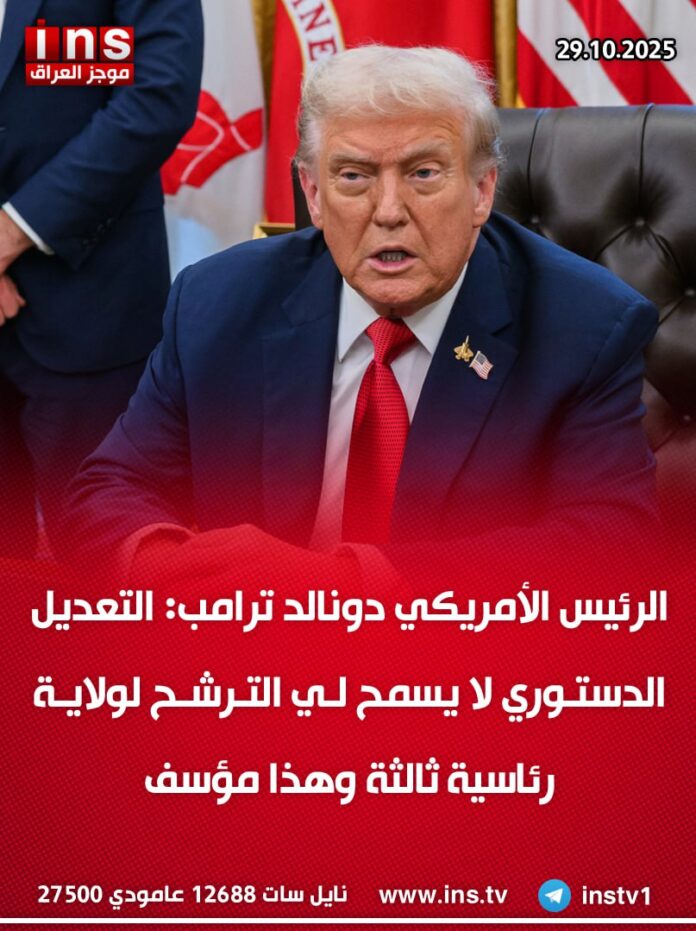 الرئيسيةالأخبارالرئيس الأمريكي دونالد ترامب: التعديل الدستوري لا يسمح لي الترشح لولاية رئاسية... الأخبار الرئيس الأمريكي دونالد ترامب: التعديل الدستوري لا يسمح لي الترشح لولاية رئاسية ثالثة وهذا مؤسف 0 7 أكتوبر 29, 2025 كتب بواسطة موجز العراق ins شارك FacebookTwitterPinterestWhatsAppTelegramViberCopy URL شارك FacebookTwitterPinterestWhatsAppTelegramViberCopy URL مقالات ذات صلة الأخبار الوكالة الدولية للطاقة الذرية: رصد نشاط بالقرب من مواقع مخزونات نووية في إيران أكتوبر 29, 2025 الأخبار المبعوثة الأمريكية إلى لبنان مورغان أورتاغوس: على الجيش اللبناني التنفيذ الكامل لقرار حصر السلاح بيد الدولة أكتوبر 29, 2025 الأخبار مجلة “ذا أتلانتك” الأمريكية: القرار الأخير لوزارة الخزانة الأمريكية بفرض عقوبات على شركة المهندس العامة واثنين من كبار رجال الأعمال العراقيين “عقيل مفتن وعلي... أكتوبر 29, 2025