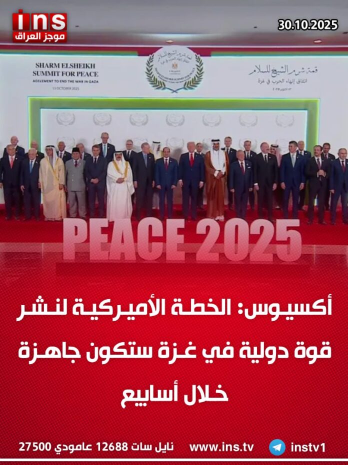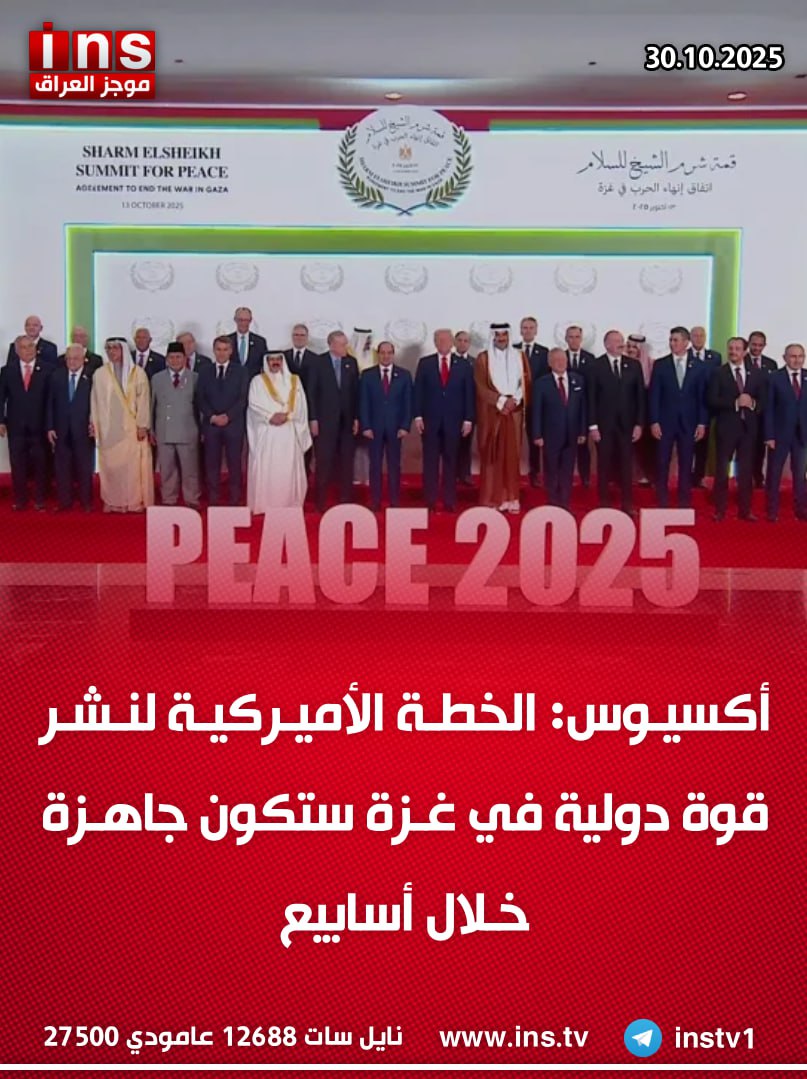 الرئيسيةالأخبارأكسيوس: الخطة الأميركية لنشر قوة دولية في غزة ستكون جاهزة خلال أسابيع الأخبار أكسيوس: الخطة الأميركية لنشر قوة دولية في غزة ستكون جاهزة خلال أسابيع 0 9 أكتوبر 30, 2025 كتب بواسطة موجز العراق ins شارك FacebookTwitterPinterestWhatsAppTelegramViberCopy URL شارك FacebookTwitterPinterestWhatsAppTelegramViberCopy URL مقالات ذات صلة الأخبار رئيس الوزراء الإسرائيلي بنيامين نتنياهو: إذا استمرت حركة حماس الإرهابية في انتهاك وقف إطلاق النار فسنستهدفها بضربات قوية أكتوبر 30, 2025 الأخبار الحكومة البريطانية تفرض عقوبات على المقرب من مجتبى خامنئي والحرس الثوري الإيراني علي أنصاري لتسهيله ودعمه أنشطة الحرس الثوري الإيراني العدائية ضد المملكة المتحدة... أكتوبر 30, 2025 الأخبار الوكالة الدولية للطاقة الذرية: رصد نشاط بالقرب من مواقع مخزونات نووية في إيران أكتوبر 29, 2025