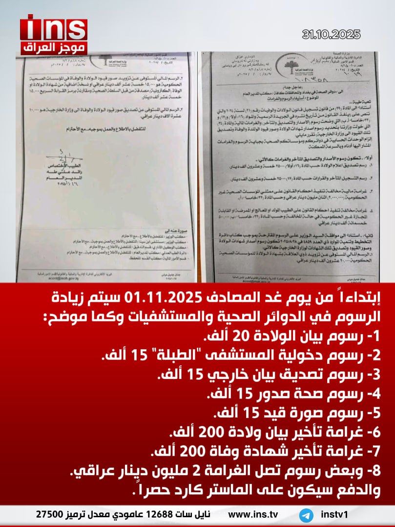 8- وبعض رسوم تصل الغرامة 2 مليون دينار عراقي.