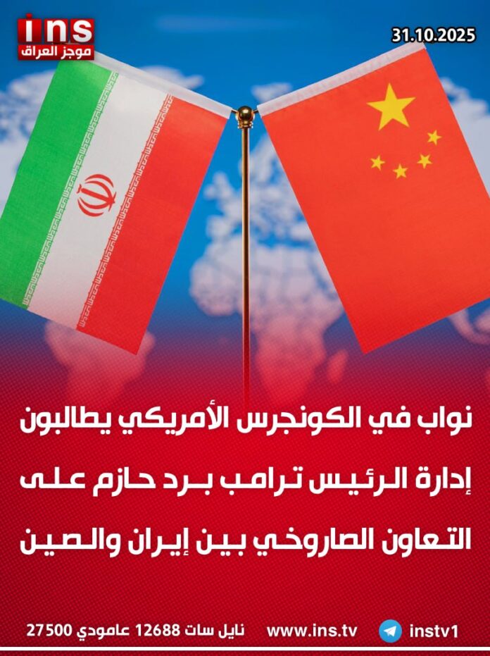 الرئيسيةالأخبارنواب في الكونجرس الأمريكي يطالبون إدارة الرئيس ترامب برد حازم على التعاون... الأخبار نواب في الكونجرس الأمريكي يطالبون إدارة الرئيس ترامب برد حازم على التعاون الصاروخي بين إيران والصين 0 10 أكتوبر 31, 2025 كتب بواسطة موجز العراق ins شارك FacebookTwitterPinterestWhatsAppTelegramViberCopy URL شارك FacebookTwitterPinterestWhatsAppTelegramViberCopy URL مقالات ذات صلة الأخبار صحيفة “معاريف” الإسرائيلية: تأهب إيراني للهجوم على إسرائيل من خلال ميليشيات شيعية في العراق في طليعتها حركة النجباء أكتوبر 31, 2025 الأخبار السيناتور ريك سكوت: توقعوا المزيد من العمل العسكري ضد إيران أكتوبر 31, 2025 الأخبار إدارة الطيران الفيدرالية الأمريكية وتحت إشراف وزارة الحرب إشعاراً لمهام الطيران “نوتام” تعلن عن فرض قيود مؤقتة على الطيران لأسباب أمنية خاصة في منطقة... أكتوبر 31, 2025