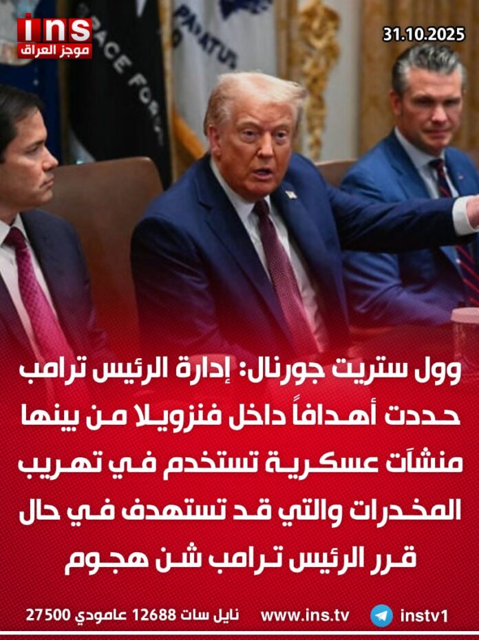وول ستريت جورنال: إدارة الرئيس ترامب حددت أهدافاً داخل فنزويلا من بينها منشآت عسكرية تستخدم في تهريب المخدرات والتي قد تستهدف بضربات جوية في حال قرر الرئيس ترامب شن هجوم