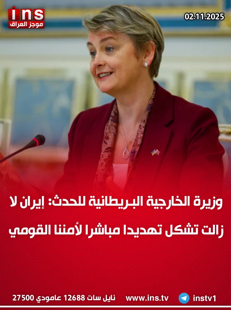 الرئيسيةالأخباروزيرة الخارجية البريطانية للحدث: إيران لا زالت تشكل تهديدا مباشرا لأمننا القومي الأخبار وزيرة الخارجية البريطانية للحدث: إيران لا زالت تشكل تهديدا مباشرا لأمننا القومي 0 9 نوفمبر 2, 2025 كتب بواسطة موجز العراق ins شارك FacebookTwitterPinterestWhatsAppTelegramViberCopy URL شارك FacebookTwitterPinterestWhatsAppTelegramViberCopy URL مقالات ذات صلة الأخبار غارات جوية إسرائيلية تستهدف اهداف تابعة لمنظمة حزب الله الإرهابية في النبطية جنوب لبنان نوفمبر 2, 2025 الأخبار وزيرة الخارجية البريطانية للحدث: نريد نزعاً كاملاً لسلاح حزب الله نوفمبر 2, 2025 الأخبار العثور على ثلاثة إخوة مقتولين داخل الأهوار أثناء بحثهم عن مواشيهم المسروقة في قضاء الجبايش بمحافظة ذي قار نوفمبر 2, 2025