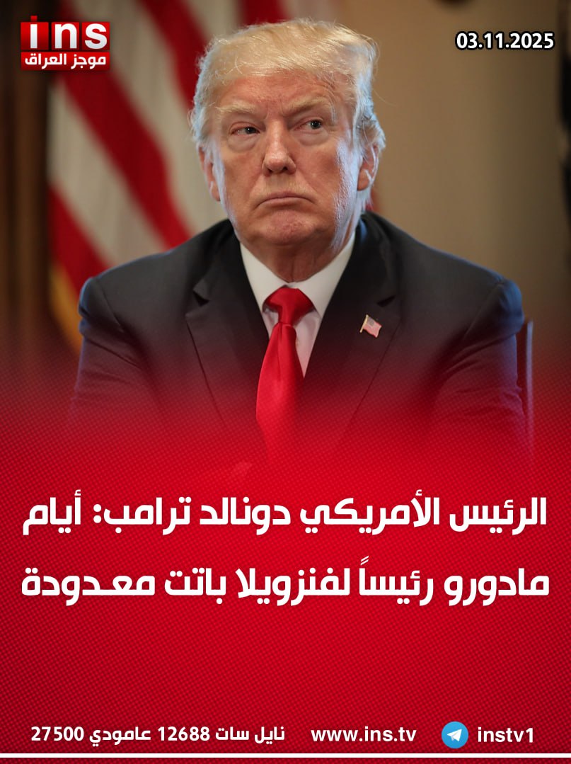 الرئيسيةالأخبارالرئيس الأمريكي دونالد ترامب: أيام مادورو رئيساً لفنزويلا باتت معدودة الأخبار الرئيس الأمريكي دونالد ترامب: أيام مادورو رئيساً لفنزويلا باتت معدودة 0 10 نوفمبر 3, 2025 كتب بواسطة موجز العراق ins شارك FacebookTwitterPinterestWhatsAppTelegramViberCopy URL شارك FacebookTwitterPinterestWhatsAppTelegramViberCopy URL مقالات ذات صلة الأخبار النائب سعود الساعدي عن نتائج التحقيق بمخالفات في محافظة البصرة يكشف عن قيام محافظ البصرة اسعد العيداني بسرقة مبلغ مقدارة 4 تريليون و500 مليار... نوفمبر 3, 2025 الأخبار مقتل عنصر في منظمة حزب الله الإرهابية يدعى يوسف سرور بمسيرة إسرائيلية استهدفت دراجته النارية في قرية عيتا الشعب بلبنان نوفمبر 3, 2025 الأخبار مبعوث الرئيس ترامب للشؤون الأفريقية: إدارة الرئيس ترامب اقترحت خطة لوقف الحرب بالسودان، وتلقينا موافقة مبدئية ورد إيجابي من طرفي الصراع، خصوصاً من جانب... نوفمبر 3, 2025