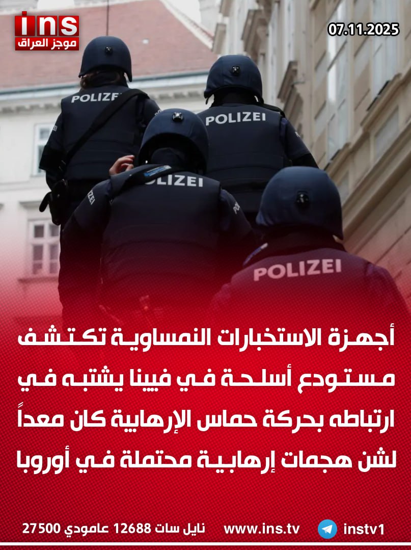 الرئيسيةالأخبارأجهزة الاستخبارات النمساوية تكتشف مستودع أسلحة في فيينا يشتبه في ارتباطه بحركة... الأخبار أجهزة الاستخبارات النمساوية تكتشف مستودع أسلحة في فيينا يشتبه في ارتباطه بحركة حماس الإرهابية كان معداً لشن هجمات إرهابية محتملة في أوروبا 0 6 نوفمبر 7, 2025 كتب بواسطة موجز العراق ins شارك FacebookTwitterPinterestWhatsAppTelegramViberCopy URL شارك FacebookTwitterPinterestWhatsAppTelegramViberCopy URL مقالات ذات صلة الأخبار إيران تعلن عن اختبار صاروخ باليستي جديد عابر للقارات بمدى 10 آلاف كيلومتر قادر على ضرب الأراضي الأمريكية نوفمبر 7, 2025 الأخبار السفارة الأمريكية في بيروت: واشنطن ستستخدم كل الوسائل لمنع حزب الله من تهديد لبنان والمنطقة نوفمبر 7, 2025 الأخبار واشنطن تتهم إيران بمحاولة اغتيال السفير الإسرائيلي في المكسيك نوفمبر 7, 2025