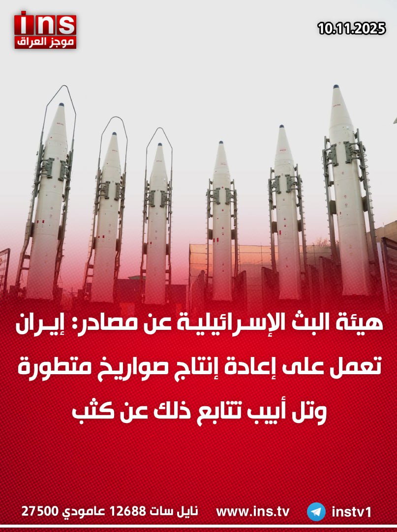 الرئيسيةالأخبارهيئة البث الإسرائيلية عن مصادر: إيران تعمل على إعادة إنتاج صواريخ متطورة... الأخبار هيئة البث الإسرائيلية عن مصادر: إيران تعمل على إعادة إنتاج صواريخ متطورة وتل أبيب تتابع ذلك عن كثب 0 6 نوفمبر 10, 2025 كتب بواسطة موجز العراق ins شارك FacebookTwitterPinterestWhatsAppTelegramViberCopy URL شارك FacebookTwitterPinterestWhatsAppTelegramViberCopy URL مقالات ذات صلة الأخبار الخزانة الأميركية تعلن عن تعليق عقوبات قيصر على سوريا عقب اجتماع الرئيس السوري احمد الشرع مع الرئيس الأمريكي دونالد ترامب في البيت الأبيض نوفمبر 10, 2025 الأخبار سلاح الجو الإسرائيلي يشن سلسلة غارات على أهداف تابعة لمنظمة حزب الله الإرهابية في منطقة الريحان جنوب لبنان نوفمبر 10, 2025 الأخبار نائب رئيس لجنة الطاقة في البرلمان الإيراني فرهاد شهركي: الميزانية المخصصة لاستيراد البنزين لهذا العام قد نفدت خلال الأشهر الأولى، والحكومة لم يعد لديها... نوفمبر 10, 2025