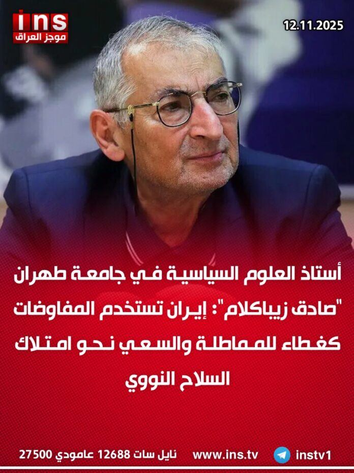 الرئيسيةالأخبارأستاذ العلوم السياسية في جامعة طهران "صادق زيباكلام": إيران تستخدم المفاوضات كغطاء... الأخبار أستاذ العلوم السياسية في جامعة طهران “صادق زيباكلام”: إيران تستخدم المفاوضات كغطاء للمماطلة والسعي نحو امتلاك السلاح النووي 0 7 نوفمبر 12, 2025 كتب بواسطة موجز العراق ins شارك FacebookTwitterPinterestWhatsAppTelegramViberCopy URL شارك FacebookTwitterPinterestWhatsAppTelegramViberCopy URL مقالات ذات صلة الأخبار الوكالة السويدية لحماية الطوائف الدينية تعلن قطع التمويل الحكومي عن مركز الإمام علي الإسلامي بعد ورود معلومات من جهاز الأمن السويدي “سيبو” بسبب استخدام... نوفمبر 12, 2025 الأخبار الرئيس السوري أحمد الشرع لـ “واشنطن بوست”: طردنا ميليشيات إيران وحزب الله من سوريا ونستعد لمرحلة جديدة مع واشنطن نوفمبر 12, 2025 الأخبار رئيس بلدية طهران “مهدي جمران” يعلن بناء ملاجئ سرية في العاصمة الإيرانية استعداداً لحرب محتملة مع إسرائيل نوفمبر 12, 2025