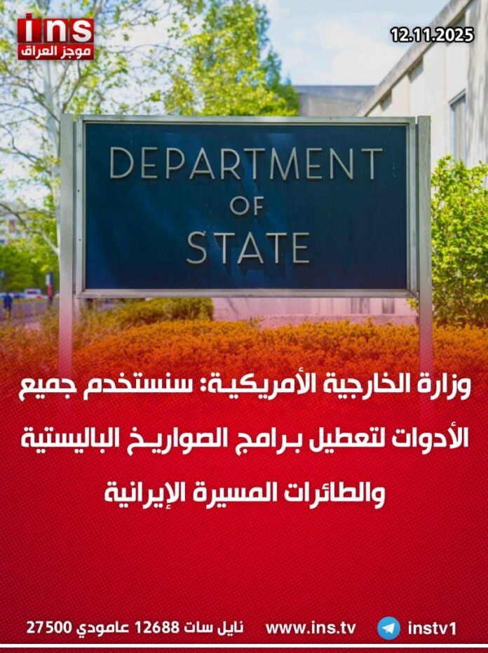 الرئيسيةالأخباروزارة الخارجية الأمريكية: سنستخدم جميع الأدوات لتعطيل برامج الصواريخ الباليستية والطائرات المسيرة... الأخبار وزارة الخارجية الأمريكية: سنستخدم جميع الأدوات لتعطيل برامج الصواريخ الباليستية والطائرات المسيرة الإيرانية 0 10 نوفمبر 12, 2025 كتب بواسطة موجز العراق ins شارك FacebookTwitterPinterestWhatsAppTelegramViberCopy URL شارك FacebookTwitterPinterestWhatsAppTelegramViberCopy URL مقالات ذات صلة الأخبار الخزانة الأمريكية تفرض عقوبات على 32 فرداً وكياناً في إيران والإمارات العربية المتحدة وتركيا والصين والهند وألمانيا وأوكرانيا وهونغ كونغ لدعمهم برنامج الصواريخ والطائرات... نوفمبر 12, 2025 الأخبار الوكالة السويدية لحماية الطوائف الدينية تعلن قطع التمويل الحكومي عن مركز الإمام علي الإسلامي بعد ورود معلومات من جهاز الأمن السويدي “سيبو” بسبب استخدام... نوفمبر 12, 2025 الأخبار أستاذ العلوم السياسية في جامعة طهران “صادق زيباكلام”: إيران تستخدم المفاوضات كغطاء للمماطلة والسعي نحو امتلاك السلاح النووي نوفمبر 12, 2025