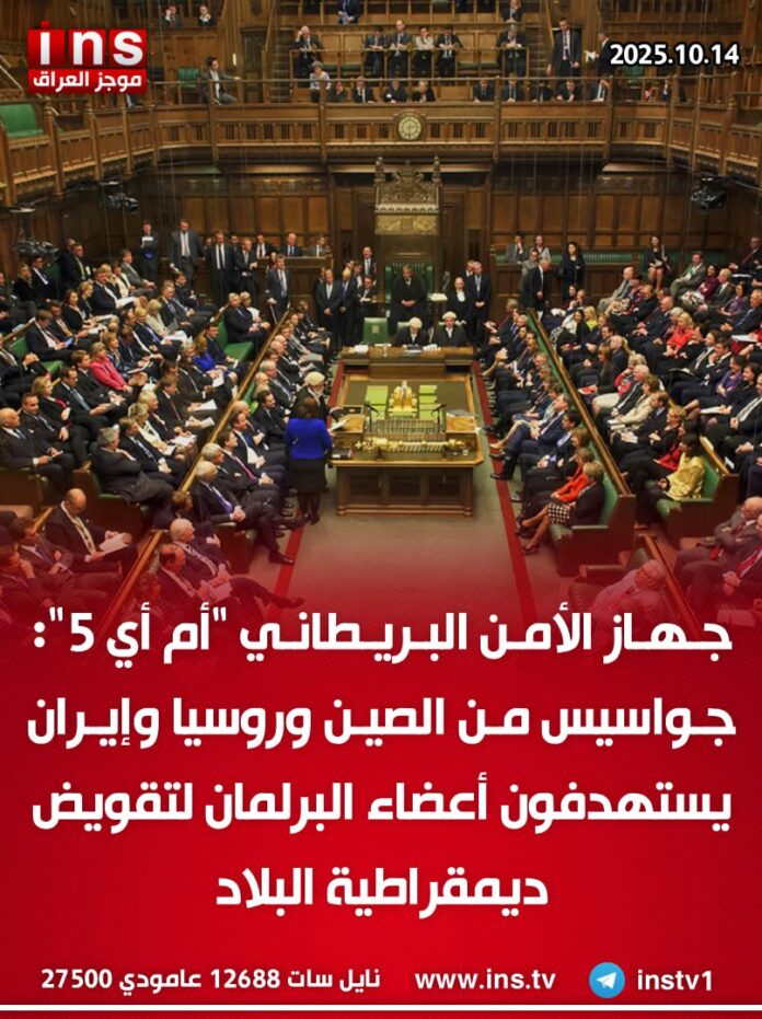 الرئيسيةالأخبارجهاز الأمن البريطاني "أم أي 5": جواسيس من الصين وروسيا وإيران يستهدفون... الأخبار جهاز الأمن البريطاني “أم أي 5”: جواسيس من الصين وروسيا وإيران يستهدفون أعضاء البرلمان لتقويض ديمقراطية البلاد 0 18 أكتوبر 14, 2025 كتب بواسطة موجز العراق ins شارك FacebookTwitterPinterestWhatsAppTelegramViberCopy URL شارك FacebookTwitterPinterestWhatsAppTelegramViberCopy URL مقالات ذات صلة الأخبار معهد دراسات الأمن القومي الإسرائيلي: خطة إيرانية لإعادة تسليح حركة حماس الإرهابية عن طريق السودان بعد الخسائر الفادحة التي تلقتها الحركة في الحرب على... أكتوبر 14, 2025 الأخبار بعد الانسحاب الجزئي للقوات الإسرائيلية من قطاع غزة.. حركة حماس الإرهابية تقوم بإعدام العشرات من اهالي قطاع غزة أكتوبر 14, 2025 الأخبار أكثر من 1500 سجين محكوم عليهم بالإعدام يبدؤون إضراباً عن الطعام منذ صباح الاثنين في سجن قزل هزار بإيران أكتوبر 14, 2025