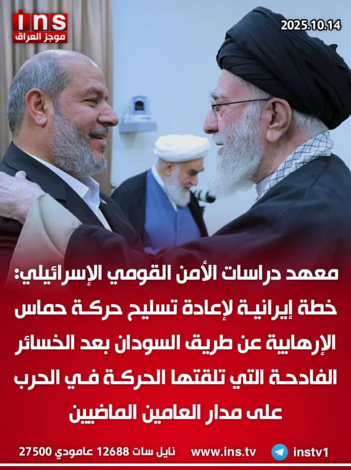 معهد دراسات الأمن القومي الإسرائيلي: خطة إيرانية لإعادة تسليح حركة حماس الإرهابية عن طريق السودان بعد الخسائر الفادحة التي تلقتها الحركة في الحرب على مدار العامين الماضيين