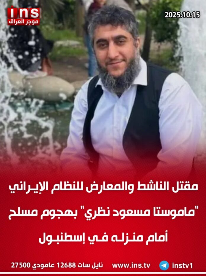 الرئيسيةالأخبارمقتل الناشط والمعارض للنظام الإيراني "ماموستا مسعود نظري" بهجوم مسلح أمام منزله... الأخبار مقتل الناشط والمعارض للنظام الإيراني “ماموستا مسعود نظري” بهجوم مسلح أمام منزله في إسطنبول 0 12 أكتوبر 15, 2025 كتب بواسطة موجز العراق ins شارك FacebookTwitterPinterestWhatsAppTelegramViberCopy URL شارك FacebookTwitterPinterestWhatsAppTelegramViberCopy URL مقالات ذات صلة الأخبار الاستخبارات البريطانية: رصدنا أكثر من 20 مخططاً قاتلاً للنظام الإيراني لاستهداف معارضيه أكتوبر 16, 2025 الأخبار المتحدثة باسم البيت الأبيض “كارولين ليفيت” رداً على “زهران ممداني” المرشح الديمقراطي لمنصب عمدة نيويورك والمعارض لترامب والذي رفض القول بأن على حماس نزع... أكتوبر 16, 2025 الأخبار الرئيس الأمريكي دونالد ترامب: إذا استمرت حماس “الإرهابية” في قتل الناس في غزة فلن يكون أمامنا خيار سوى التدخل وقتلهم أكتوبر 16, 2025