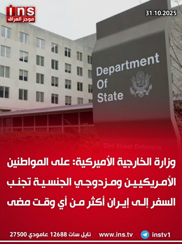 الرئيسيةالأخباروزارة الخارجية الأميركية: على المواطنين الأمريكيين ومزدوجي الجنسية تجنب السفر إلى إيران... الأخبار وزارة الخارجية الأميركية: على المواطنين الأمريكيين ومزدوجي الجنسية تجنب السفر إلى إيران أكثر من أي وقت مضى 0 63 أكتوبر 31, 2025 كتب بواسطة موجز العراق ins شارك FacebookTwitterPinterestWhatsAppTelegramViberCopy URL شارك FacebookTwitterPinterestWhatsAppTelegramViberCopy URL مقالات ذات صلة الأخبار رئيس أركان الجيش الإسرائيلي “إيال زامير” يلوح بهجوم جديد على إيران: إسرائيل ستضرب حيثما تقتضي الضرورة ديسمبر 21, 2025 الأخبار القائد السابق للقوة البحرية في الحرس الثوري الإيراني حسين علائي: البنية الاستخباراتية الإيرانية غير فاعلة في مواجهة إسرائيل ديسمبر 21, 2025 الأخبار الحكم بالحبس سنتين فقط بحق “سيف الوكيل” شريك المحامية قمر السامرائي بعد اختلاسه مبلغ وقدره 21 مليار دينار من صندوق تقاعد المحامين ديسمبر 21, 2025