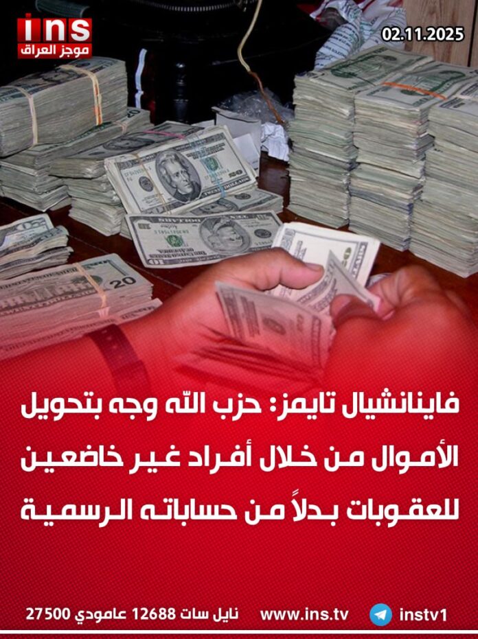 الرئيسيةالأخبارفاينانشيال تايمز: حزب الله وجه بتحويل الأموال من خلال أفراد غير خاضعين... الأخبار فاينانشيال تايمز: حزب الله وجه بتحويل الأموال من خلال أفراد غير خاضعين للعقوبات بدلاً من حساباته الرسمية 0 75 نوفمبر 2, 2025 كتب بواسطة موجز العراق ins شارك FacebookTwitterPinterestWhatsAppTelegramViberCopy URL شارك FacebookTwitterPinterestWhatsAppTelegramViberCopy URL مقالات ذات صلة الأخبار الحكم بالحبس سنتين فقط بحق “سيف الوكيل” شريك المحامية قمر السامرائي بعد اختلاسه مبلغ وقدره 21 مليار دينار من صندوق تقاعد المحامين ديسمبر 21, 2025 الأخبار الباحث البارز في مركز القدس للشؤون الخارجية والأمنية “ساغيف أسولين”: المواجهة القادمة بين إسرائيل وإيران ليست مسألة “هل ستحدث” بل مسألة “متى ستحدث”، النظام... ديسمبر 21, 2025 الأخبار النائب الجمهوري جو ويلسون بخصوص “شكر فائق زيدان الميليشيات الارهابية في العراق بقبولها نزع سلاحها بعد الاستماع الى نصيحته”: يعد هذا السلوك من أخطر... ديسمبر 20, 2025