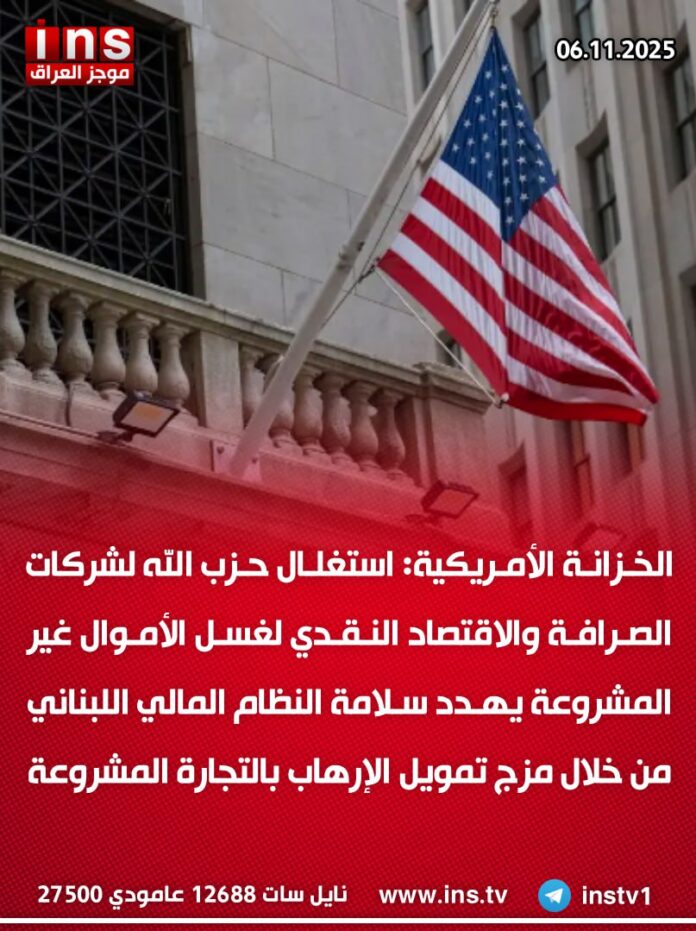 الخزانة الأمريكية: استغلال حزب الله لشركات الصرافة والاقتصاد النقدي لغسل الأموال غير المشروعة يهدد سلامة النظام المالي اللبناني من خلال مزج تمويل الإرهاب بالتجارة المشروعة
