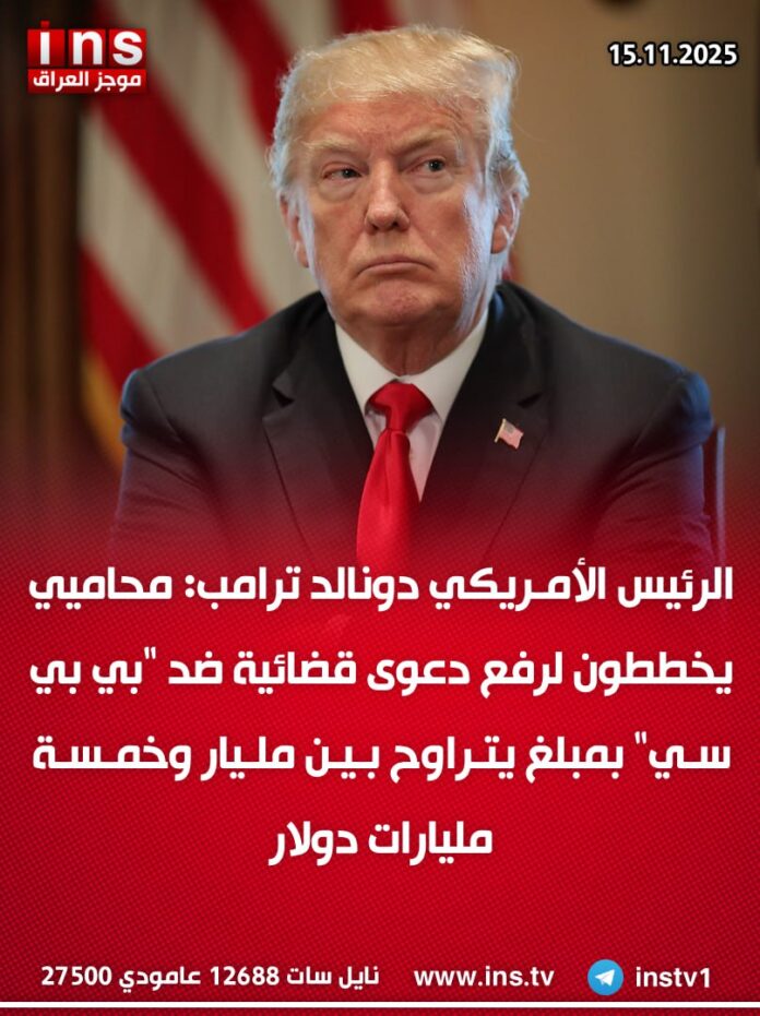 الرئيسيةالأخبارالرئيس الأمريكي دونالد ترامب: محاميي يخططون لرفع دعوى قضائية ضد "بي بي... الأخبار الرئيس الأمريكي دونالد ترامب: محاميي يخططون لرفع دعوى قضائية ضد “بي بي سي” بمبلغ يتراوح بين مليار وخمسة مليارات دولار 0 53 نوفمبر 15, 2025 كتب بواسطة موجز العراق ins شارك FacebookTwitterPinterestWhatsAppTelegramViberCopy URL شارك FacebookTwitterPinterestWhatsAppTelegramViberCopy URL مقالات ذات صلة الأخبار النائب باسم خشان: نور زهير افرجت المحكمة عنه بكفالة لا تساوي خردة بالنسبة للأموال التي سرقها، وهرب من العراق بعد رفع الحجز عن أمواله... ديسمبر 18, 2025 الأخبار وزير الخارجية الإسرائيلي جدعون ساعر: إيران لا تزال تسعى إلى امتلاك سلاح نووي ونظامها يهدد استقرار المنطقة ديسمبر 18, 2025 الأخبار النائب باسم خشان: الحرب ضد الفساد يجب أن تبدأ بمعركة ضد القضاء ديسمبر 18, 2025