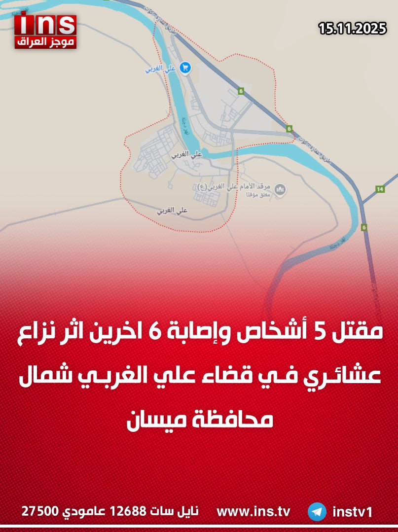 الرئيسيةالأخبارمقتل 5 أشخاص وإصابة 6 اخرين اثر نزاع عشائري في قضاء علي... الأخبار مقتل 5 أشخاص وإصابة 6 اخرين اثر نزاع عشائري في قضاء علي الغربي شمال محافظة ميسان 0 123 نوفمبر 15, 2025 كتب بواسطة موجز العراق ins شارك FacebookTwitterPinterestWhatsAppTelegramViberCopy URL شارك FacebookTwitterPinterestWhatsAppTelegramViberCopy URL مقالات ذات صلة الأخبار النائب باسم خشان: نور زهير افرجت المحكمة عنه بكفالة لا تساوي خردة بالنسبة للأموال التي سرقها، وهرب من العراق بعد رفع الحجز عن أمواله... ديسمبر 18, 2025 الأخبار وزير الخارجية الإسرائيلي جدعون ساعر: إيران لا تزال تسعى إلى امتلاك سلاح نووي ونظامها يهدد استقرار المنطقة ديسمبر 18, 2025 الأخبار النائب باسم خشان: الحرب ضد الفساد يجب أن تبدأ بمعركة ضد القضاء ديسمبر 18, 2025