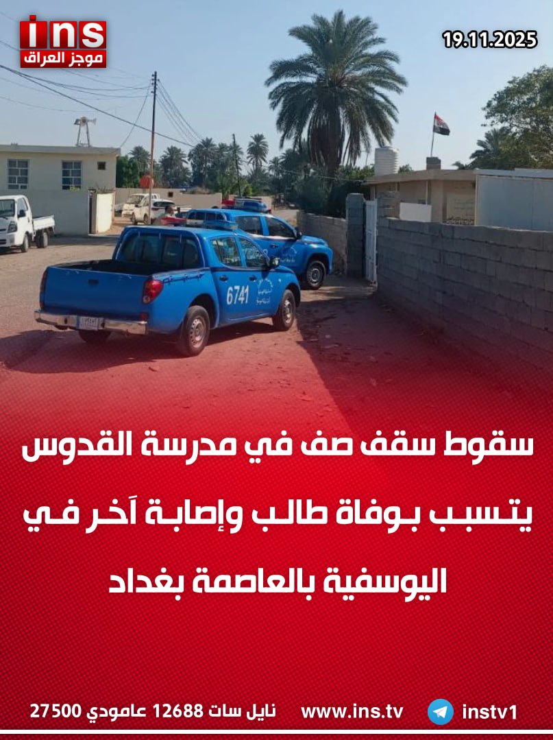 الرئيسيةالأخبارسقوط سقف صف في مدرسة القدوس يتسبب بوفاة طالب وإصابة آخر في... الأخبار سقوط سقف صف في مدرسة القدوس يتسبب بوفاة طالب وإصابة آخر في اليوسفية بالعاصمة بغداد 0 102 نوفمبر 19, 2025 كتب بواسطة موجز العراق ins شارك FacebookTwitterPinterestWhatsAppTelegramViberCopy URL شارك FacebookTwitterPinterestWhatsAppTelegramViberCopy URL مقالات ذات صلة الأخبار المحكمة الجزائية للولايات المتحدة الأمريكية تنشر إعلان استقدام بحق كل من رئيس مجلس القضاء الأعلى فائق زيدان ونوري كامل المالكي وولده أحمد نوري المالكي... ديسمبر 17, 2025 الأخبار الرئيس الأمريكي دونالد ترامب يعلن تصنيف النظام الفنزويلي كمنظمة إرهابية أجنبية ديسمبر 17, 2025 الأخبار سلاح الجو الإسرائيلي يستهدف مركبة تابعة لمنظمة حزب الله الإرهابية في قرية عديسة جنوب لبنان ديسمبر 16, 2025