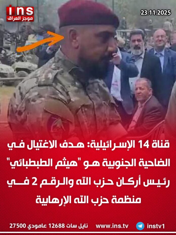 الرئيسيةالأخبارقناة 14 الإسرائيلية: هدف الاغتيال في الضاحية الجنوبية هو "هيثم الطبطبائي" رئيس... الأخبار قناة 14 الإسرائيلية: هدف الاغتيال في الضاحية الجنوبية هو “هيثم الطبطبائي” رئيس أركان حزب الله والرقم 2 في منظمة حزب الله الإرهابية 0 43 نوفمبر 23, 2025 كتب بواسطة موجز العراق ins شارك FacebookTwitterPinterestWhatsAppTelegramViberCopy URL شارك FacebookTwitterPinterestWhatsAppTelegramViberCopy URL مقالات ذات صلة الأخبار القبض على المحامية علياء الكعبي من داخل محكمة استئناف البصرة بتهم تتعلق بتجارة الدعارة وبيع الأعضاء البشرية وخطف وبيع الأطفال وتجارة المخدرات والتزوير والنصب... ديسمبر 15, 2025 الأخبار الدكتور اسماعيل مصبح الوائلي: مسؤول حالي أحد المرشحين لمنصب رئيس الوزراء يتواصل منذ فترة مع أطراف دولية مؤثرة في القرارات المصيرية في العراق ومنها... ديسمبر 15, 2025 الأخبار صحيفة “تلغراف” البريطانية: فشل نزع سلاح منظمة حزب الله الإرهابية التابعة لإيران قد يشعل نيران الحرب مع إسرائيل ديسمبر 2, 2025