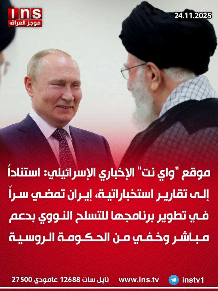 موقع “واي نت” الإخباري الإسرائيلي: استناداً إلى تقارير استخباراتية، إيران تمضي سراً في تطوير برنامجها للتسلح النووي بدعم مباشر وخفي من الحكومة الروسية