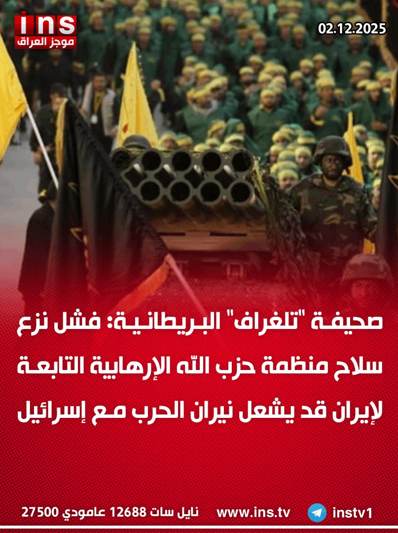 الرئيسيةالأخبارصحيفة "تلغراف" البريطانية: فشل نزع سلاح منظمة حزب الله الإرهابية التابعة لإيران... الأخبار صحيفة “تلغراف” البريطانية: فشل نزع سلاح منظمة حزب الله الإرهابية التابعة لإيران قد يشعل نيران الحرب مع إسرائيل 0 51 ديسمبر 2, 2025 كتب بواسطة موجز العراق ins شارك FacebookTwitterPinterestWhatsAppTelegramViberCopy URL شارك FacebookTwitterPinterestWhatsAppTelegramViberCopy URL مقالات ذات صلة الأخبار رئيس الوزراء الإسرائيلي بنيامين نتنياهو: مصممون على حماية حدودنا لا سيما الشمالية ديسمبر 2, 2025 الأخبار عضو لجنة الشؤون القانونية والقضائية في البرلمان الإيراني “مجتبى ذو النوري”: رسالة ترامب بشأن الشروط الثلاثة “وقف تخصيب اليورانيوم وقطع دعم الجماعات الإرهابية وتقليص... ديسمبر 2, 2025 الأخبار رويترز: إكسون موبيل تواصلت مع العراق بشأن شراء حصة لوك أويل الروسية في حقل غرب القرنة 2 النفطي ديسمبر 2, 2025
