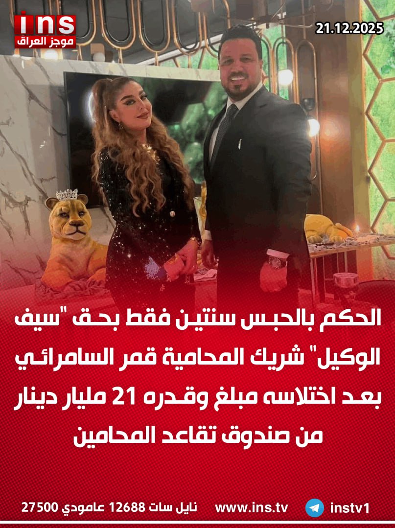 الرئيسيةالأخبارالحكم بالحبس سنتين فقط بحق "سيف الوكيل" شريك المحامية قمر السامرائي بعد... الأخبار الحكم بالحبس سنتين فقط بحق “سيف الوكيل” شريك المحامية قمر السامرائي بعد اختلاسه مبلغ وقدره 21 مليار دينار من صندوق تقاعد المحامين 0 6 ديسمبر 21, 2025 كتب بواسطة موجز العراق ins شارك FacebookTwitterPinterestWhatsAppTelegramViberCopy URL شارك FacebookTwitterPinterestWhatsAppTelegramViberCopy URL مقالات ذات صلة الأخبار رئيس أركان الجيش الإسرائيلي “إيال زامير” يلوح بهجوم جديد على إيران: إسرائيل ستضرب حيثما تقتضي الضرورة ديسمبر 21, 2025 الأخبار القائد السابق للقوة البحرية في الحرس الثوري الإيراني حسين علائي: البنية الاستخباراتية الإيرانية غير فاعلة في مواجهة إسرائيل ديسمبر 21, 2025 الأخبار الباحث البارز في مركز القدس للشؤون الخارجية والأمنية “ساغيف أسولين”: المواجهة القادمة بين إسرائيل وإيران ليست مسألة “هل ستحدث” بل مسألة “متى ستحدث”، النظام... ديسمبر 21, 2025