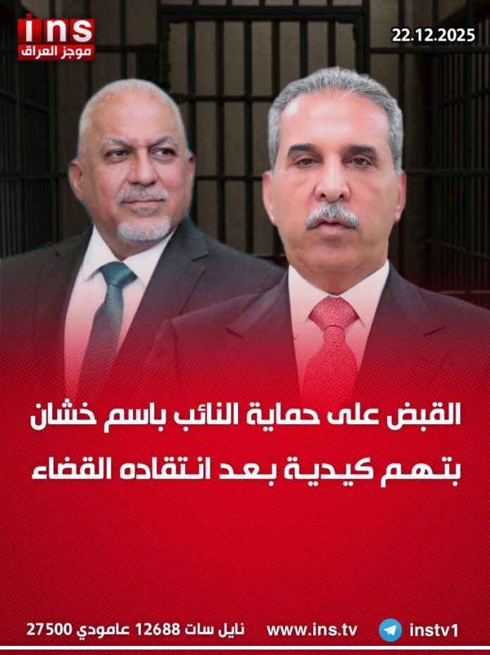 الرئيسيةالأخبارالقبض على حماية النائب باسم خشان بتهم كيدية بعد انتقاده القضاء الأخبار القبض على حماية النائب باسم خشان بتهم كيدية بعد انتقاده القضاء 0 82 ديسمبر 22, 2025 كتب بواسطة موجز العراق ins شارك FacebookTwitterPinterestWhatsAppTelegramViberCopy URL شارك FacebookTwitterPinterestWhatsAppTelegramViberCopy URL مقالات ذات صلة الأخبار صحيفة فيرفيلد الأمريكية: مذكرة القبض بحق الرئيس ترامب التي اصدرها فائق زيدان لم تكن إجراءً قانونياً حقيقياً، بل رسالة سياسية تعزز مكانته داخل المحور... ديسمبر 27, 2025 الأخبار صحيفة فيرفيلد الأمريكية: أظهر فائق زيدان ولاءً رمزياً واضحاً لسليماني والمهندس، من خلال نصب تمثال للمهندس في منزله، وإصداره مذكرة توقيف بحق الرئيس الأمريكي... ديسمبر 27, 2025 الأخبار صحيفة فيرفيلد الأمريكية نقلاً عن ضابط رفيع في المخابرات العراقية: العراق خضع لسيطرة شبكة واحدة يقودها فائق زيدان، وهو الرجل الذي وضعته إيران في... ديسمبر 27, 2025