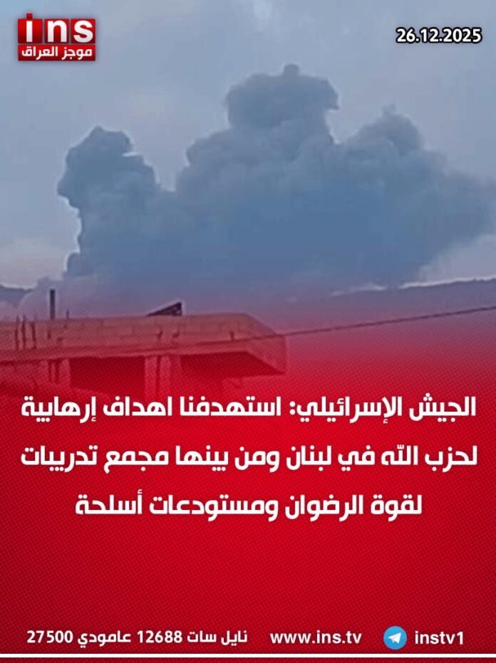الرئيسيةالأخبارالجيش الإسرائيلي: استهدفنا اهداف إرهابية لحزب الله في لبنان ومن بينها مجمع... الأخبار الجيش الإسرائيلي: استهدفنا اهداف إرهابية لحزب الله في لبنان ومن بينها مجمع تدريبات لقوة الرضوان ومستودعات أسلحة 0 64 ديسمبر 26, 2025 كتب بواسطة موجز العراق ins شارك FacebookTwitterPinterestWhatsAppTelegramViberCopy URL شارك FacebookTwitterPinterestWhatsAppTelegramViberCopy URL مقالات ذات صلة الأخبار صحيفة فيرفيلد الأمريكية: مذكرة القبض بحق الرئيس ترامب التي اصدرها فائق زيدان لم تكن إجراءً قانونياً حقيقياً، بل رسالة سياسية تعزز مكانته داخل المحور... ديسمبر 27, 2025 الأخبار صحيفة فيرفيلد الأمريكية: أظهر فائق زيدان ولاءً رمزياً واضحاً لسليماني والمهندس، من خلال نصب تمثال للمهندس في منزله، وإصداره مذكرة توقيف بحق الرئيس الأمريكي... ديسمبر 27, 2025 الأخبار صحيفة فيرفيلد الأمريكية نقلاً عن ضابط رفيع في المخابرات العراقية: العراق خضع لسيطرة شبكة واحدة يقودها فائق زيدان، وهو الرجل الذي وضعته إيران في... ديسمبر 27, 2025
